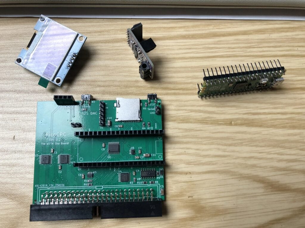 “The CPC generates a lot of signals that the card has to act upon, so an STM32 microcontroller would not be fast enough,” he says, of one potential choice. He could have opted for an FPGA solution instead, but this, too, posed problems: “It would have required expensive chips, and I don’t know how to work with them,” he adds. “At the end of the day, the Pico 2 is cheap and fast. Its two cores and the PIOs make it a lot more suitable for this kind of task than any other available microcontroller. It uses one core to manage CPC I/O, a second core to run the emulations, and the PIO pilots the multiplexors to get addresses and pull/push data from/to the CPC.”